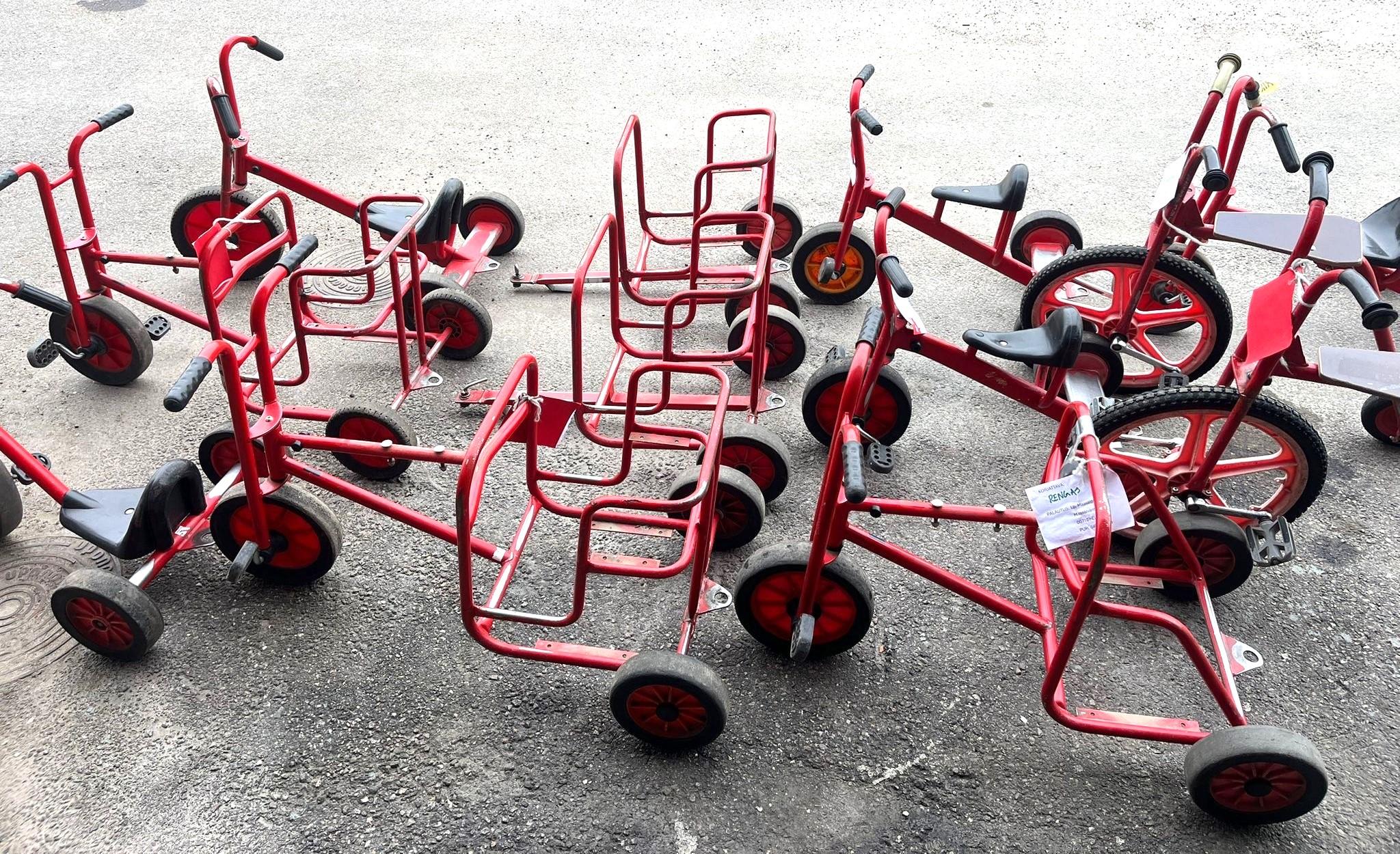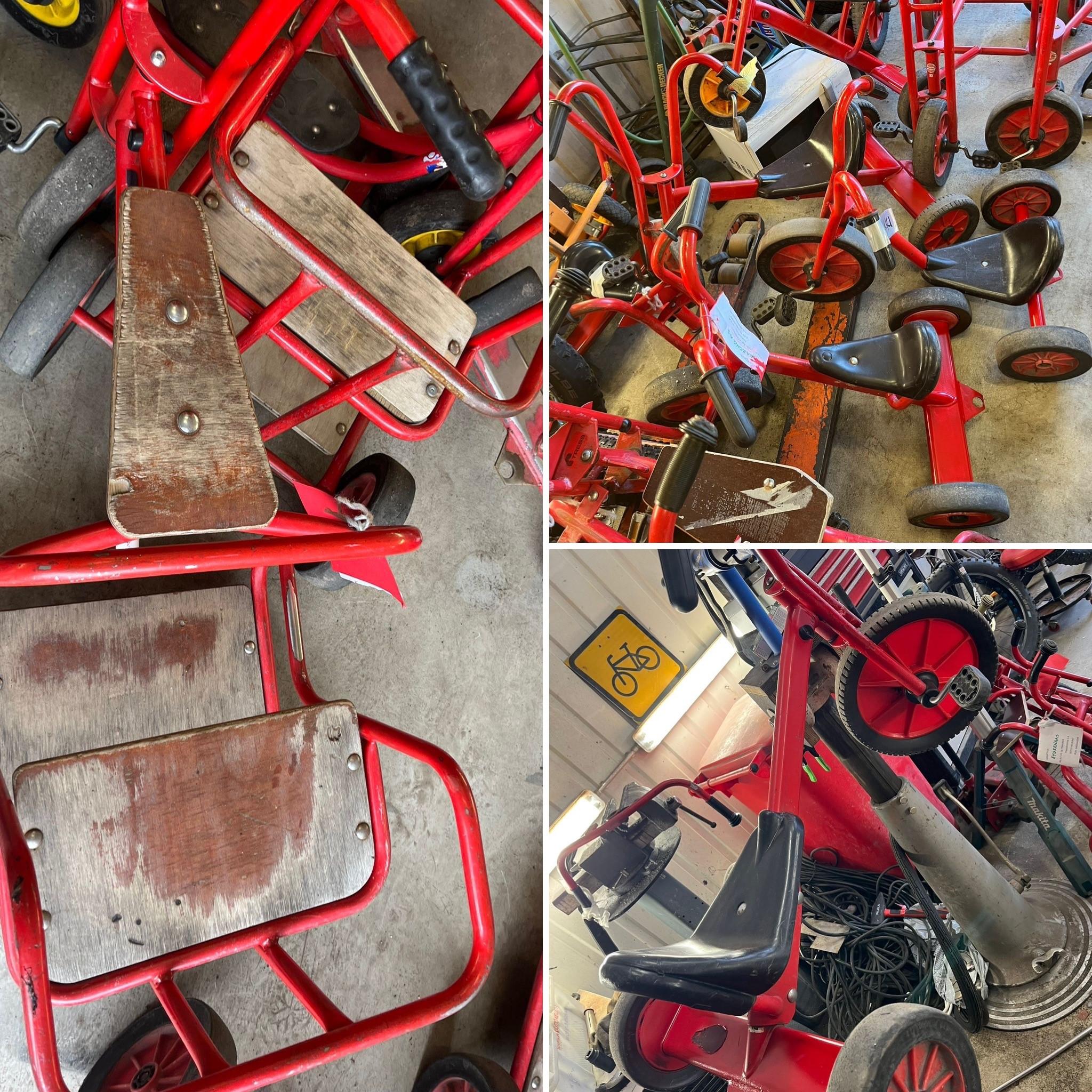 Välineistöä huollettiin intensiivisesti kahden viikon ajan. Huoltotoimenpiteisiin kuuluivat muun muassa polkimien, renkaiden ja sisäkumien vaihdot, akseleiden ja liitoskohtien korjaukset sekä hitsaukset, maalaus- ja hiontatyöt sekä uusien osien hankkiminen ja asentaminen. Välineistö myös pestiin. Käytännössä siis täysi keväthuolto puistojen pyörälaivastolle! 🔧🎨🚴